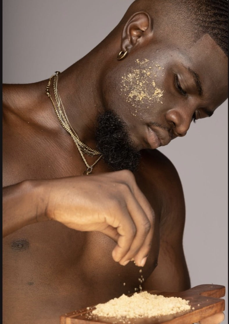 Gently exfoliate with our oatmeal-based scrub Awele, to reveal brighter, more even skin. Ideal for sensitive skin, this calming scrub helps, hydrates and heals irritated or inflamed skin, promotes new cell growth, tightens and tones skin to slow the appearance of wrinkles and other visible signs of aging. Enriched with emollient properties, it leaves skin feeling soft, supple, and rejuvenated upon application.Benefits